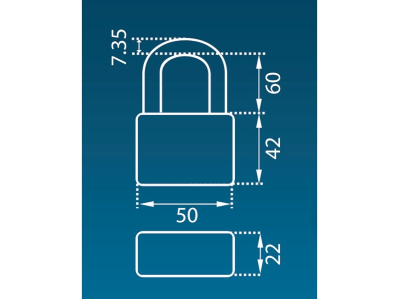 50 mm imp SLO patentový visiaci zámok s dlhým okovom kľúč S