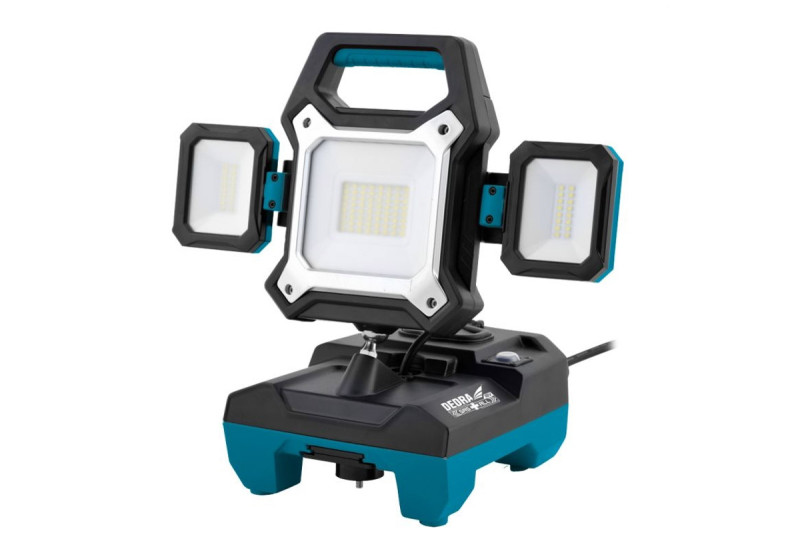 Hlavy svietidiel sú navyše nastaviteľné, čo vám umožňuje upraviť uhol osvetlenia podľa potreby. Teplota farby je 6500K. Svietidlo je ideálne nielen na osvetlenie pracovného miesta, ale aj ako zdroj svetla na pikniku alebo kempingu. Zariadenie má háčik na zavesenie svietidla, sada obsahuje adaptér pre upevnenie svietidla na statív (DED6908, DED6909). Svietidlo je možné napájať elektrinou zo zásuvky, teda populárnych 230V.