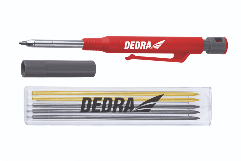 Ceruzka s vymeniteľnými stylusmi s klipom, 1 5ks stylusov: Dĺžka/priemer stylusu: 3x čierny, 2x žltý: 125/2,8 mm, tvrdosť: HB, materiál: ABS; kov, zabudované orezávátko. Vhodné na písanie na rôzne povrchy: drevo, materiály podobné drevu, papier, kov, kameň, glazované dlaždice, lakoplastové sklo, plast, iné stavebné materiály.