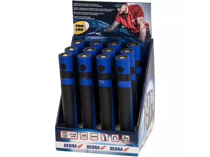 Výkon: 2W COB LED + 0,5W LED; počet lúmenov: 150lm; napájanie: 3xAA batérie; zabudovaný magnet; dva svetelné zdroje; balenie displeja: 12ks