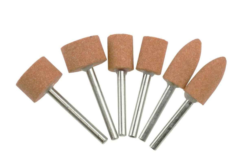 Sada obsahuje: 2ks valcovité s priemerom 15,8 mm a dĺžkou 10 mm, 2ks valcovité s priemerom 10 mm a dĺžkou 13 mm, 2ks kužeľovité s priemerom 10 mm a dĺžkou 19,5 mm, priemer stopky: 3,2 mm