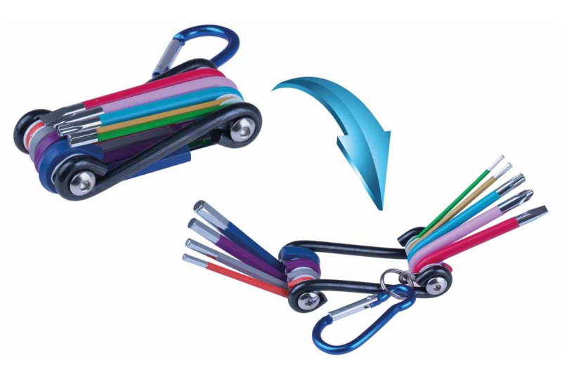 CRV, 9 ks, šesťhran: 2,2,5,3,4,5,6 mm, philips: PH2, drážkový: 5 mm, torx: T25, rôzne farby pre každý kľúč , karabína