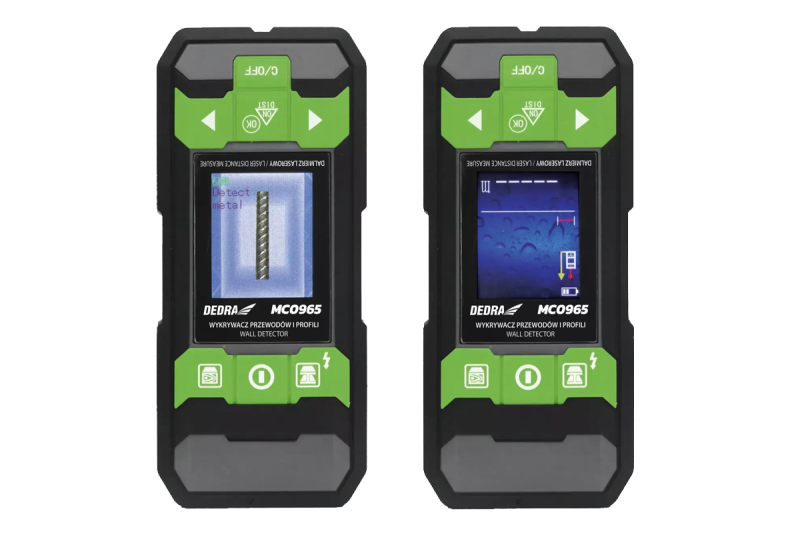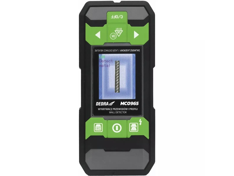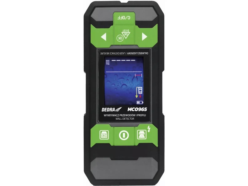 Detektor drôtov a káblov DEDRA MC0965 umožňuje detekciu kovových súčiastok a drôtov, elektrických káblovbez a pod striedavým napätím a dreva, ako aj iných predmetov, napríklad železa, betónu, skla, al umini um atď. Pomáha to skompletizovať technickú dokumentáciu budov. Okrem toho je detektor vybavený funkciou merača vzdialenosti s pracovným rozsahom0,05-40 m, čo je veľkou výhodou, pretože namiesto dvoch zariadení máme jedno.
