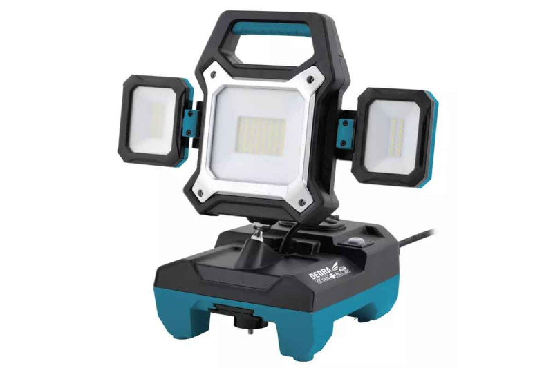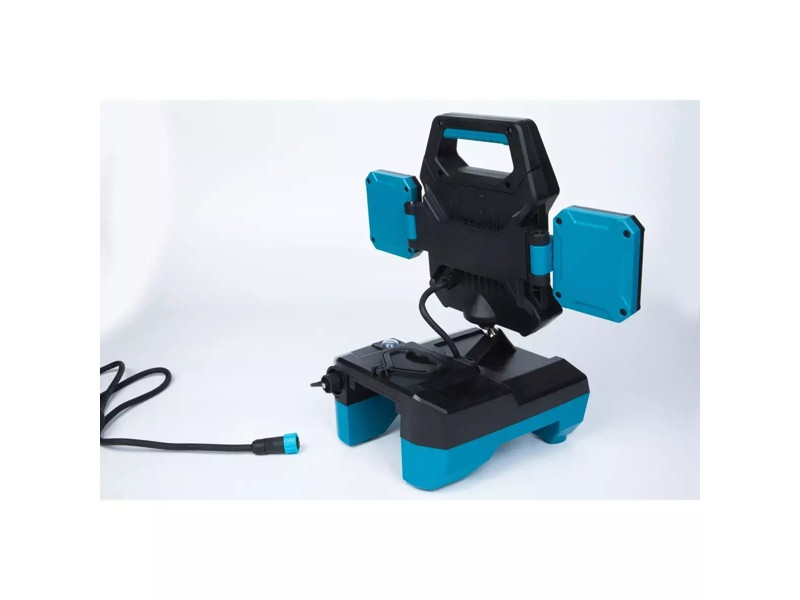 Svetelný tok: 2250 lm (18V)/4000 lm (230V), farba svetla: 6500K, stupeň ochrany: IP65 a IK07, napájanie z batérie alebo 230V, možnosť zavesenia alebo montáže na statív, uhol vyžarovania: 120°.