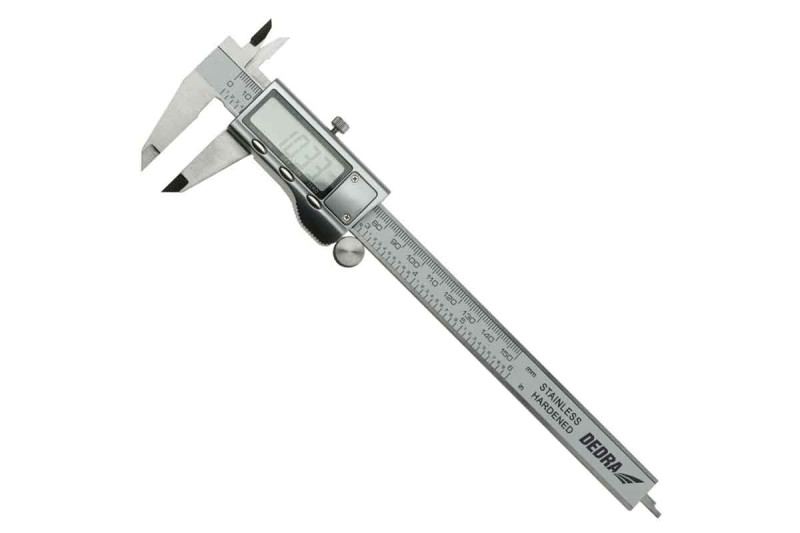 Materiál: nehrdzavejúca oceľ; rozsah merania: 0-150 mm; presnosť: ±0,01 mm/m; merné jednotky: mm/inch; prehľadný LCD displej