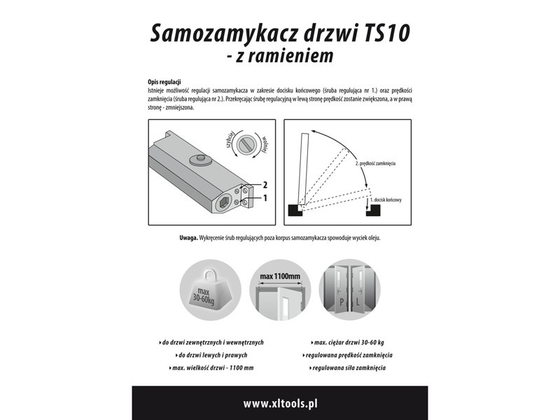 Dverový zatvárač TS-10 30-60kg 1100mm hnedý