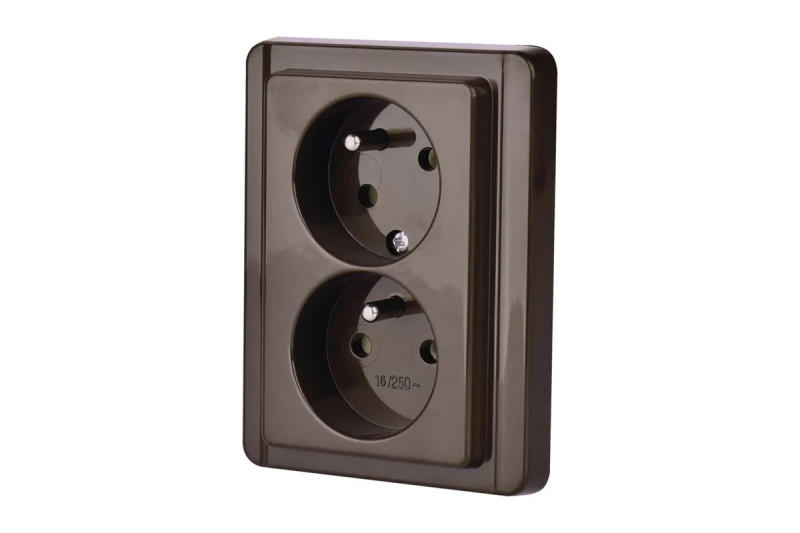 Dvojzásuvka štandard pootočená hnedá 4FN 15098.2116 TESLA