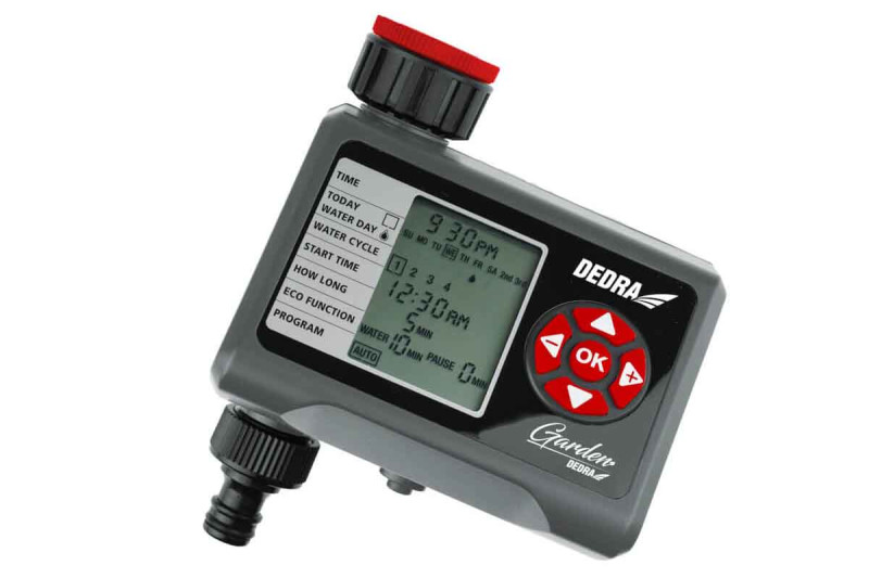 Vyrobené z odolného plastu, 4 programy zavlažovania, doba zavlažovania od 1 do 240 min, možnosť voľby dňa zavlažovania, šikmý displej z tekutých kryštálov pre jednoduché ovládanie, ekologický režim pre prerušovanú prevádzku a úsporu vody, odklad zavlažovania až o 6 dní, napájanie batériami (2xAA)
