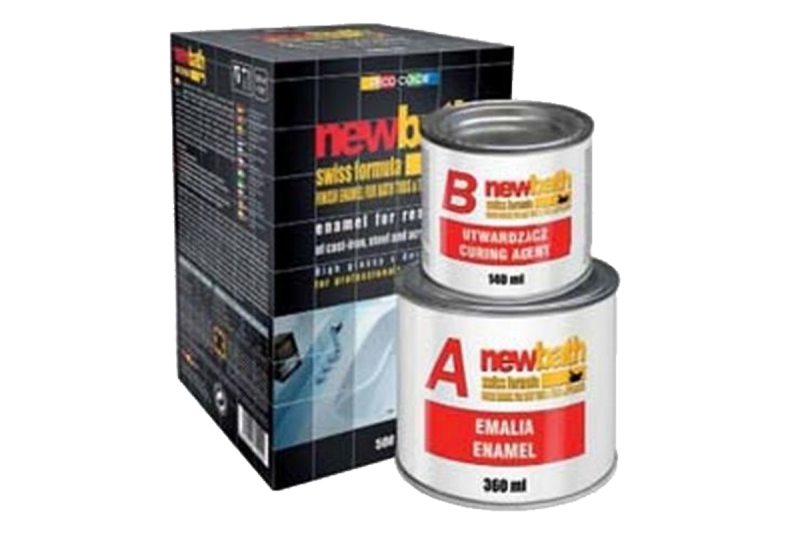 Použitie: Dvojzložkový smalt na renováciu liatinových, smaltovaných a akrylátových vaní a vaničiek. Používa sa na: maľovanie sanitárnych zariadení, ako sú umývadlá, sprchové vaničky, keramické dlaždice, vane, sanita. Môže byť použitý na iné keramické a drevené povrchy, laminátové povrchy (člny, jachty, lietadlá), oceľ a hliník, ako aj na plastové prvky. Farba je vhodná na pokrytie povrchov nad a aj pod čiarou ponoru.
