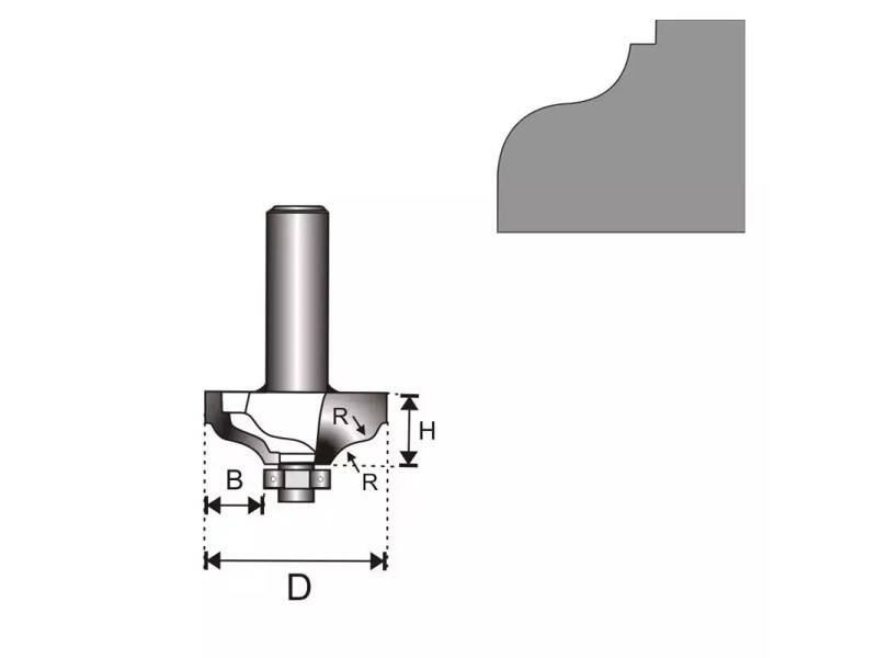Frézka vidiová do dreva s ložiskom stopka 8mm, D 32, H 12,9,B9,52, R 11,1 mm