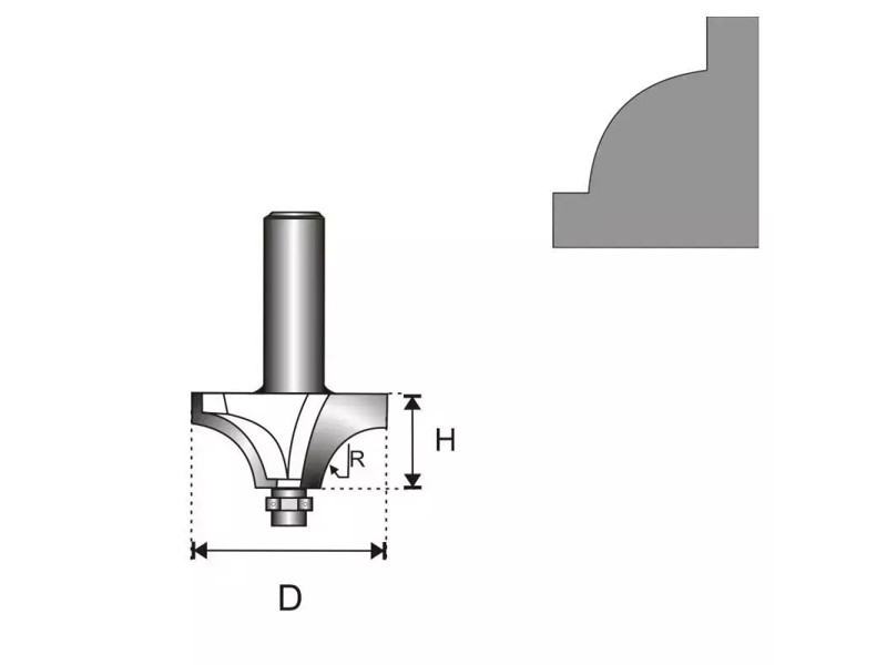 Frézka vidiová do dreva s ložiskom stopka 8mm, D 35,2mm, H 16mm, R 11,1 mm