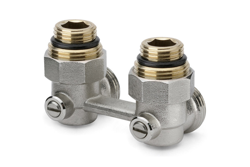 H šrúbenie (vekolux) 1/2"M rohové s dvomi adaptérmi 3/4" EK x 1/2"M, rozostup rúr 50mm, poniklované