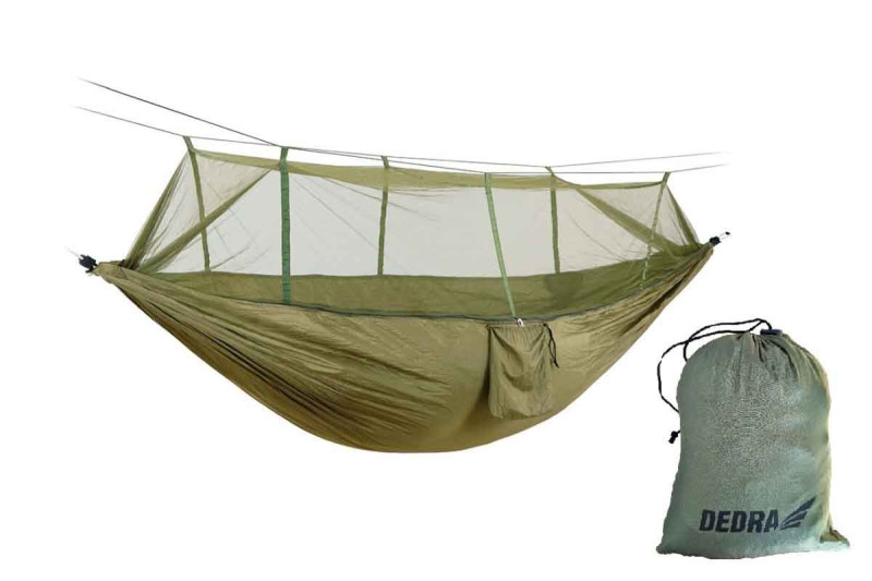 Materiál nylon: 210T, max. zaťaženie: 200 kg, vrátane: balenie: 2x karabína, 2x lano na hojdaciu sieť 2m, 2x lano na moskytiéru 4m, úložná taška.