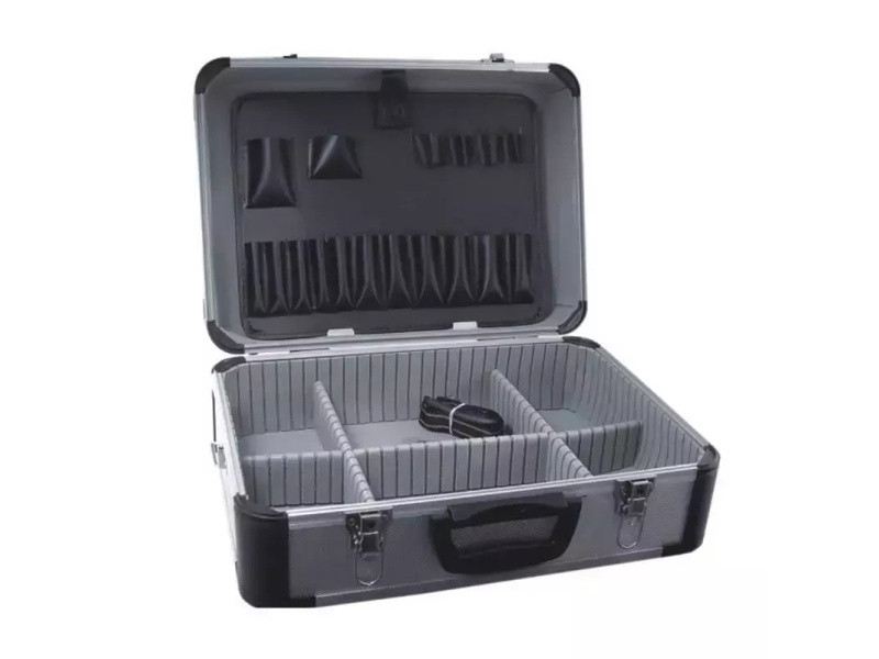 Materiál: hliník; rozmery: 455x330x170 mm; odolný proti poškodeniu; množstvo vreciek a priehradiek; kovové zatváracie spony