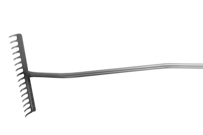 Špeciálne profilovaná rúrka zaručuje komfortnejšiu prácu, široký rozsah pracovnej časti umožňuje hrabať väčšiu plochu. Určenie: hrabanie piesku/zeme, na odstraňovanie kameňov