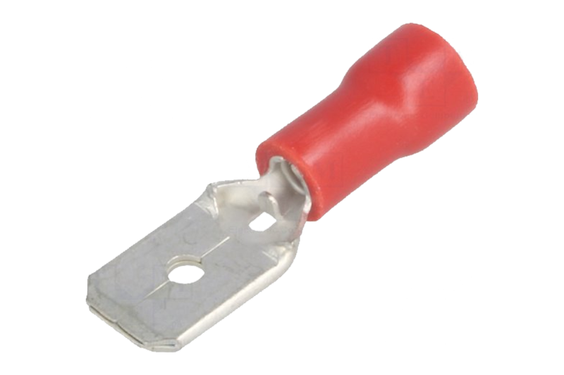 Izolovaný plochý konektor samček červený 6,3mm/0,8mm