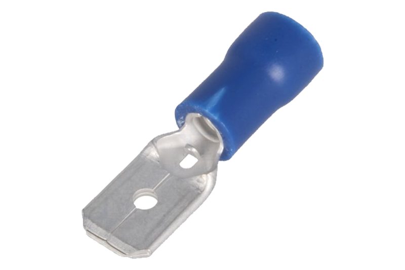 Izolovaný plochý konektor samček modrý 6,3mm/0,8mm