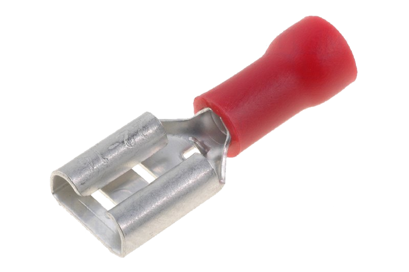 Izolovaný plochý konektor samička červený 6,3mm/0,8mm