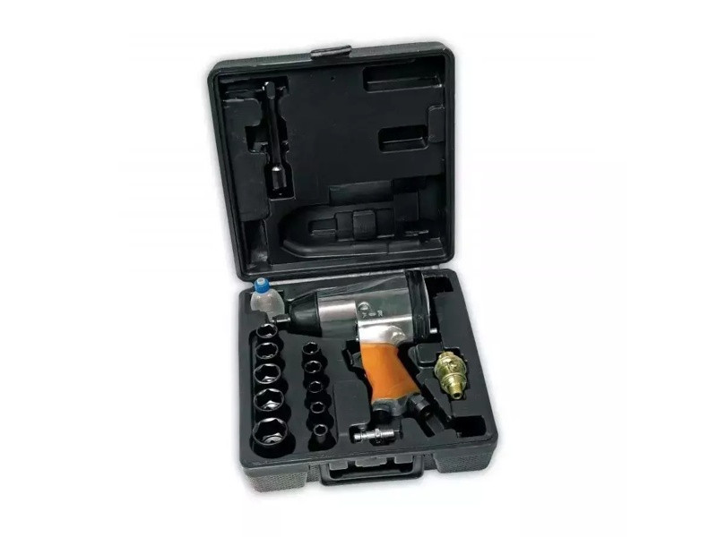 Nástavce 1/2", pracovný tlak 7 barov, minimálny prietok vzduchu 200 l/min, krútiaci moment 310 Nm, súprava nástavcov, kufrík