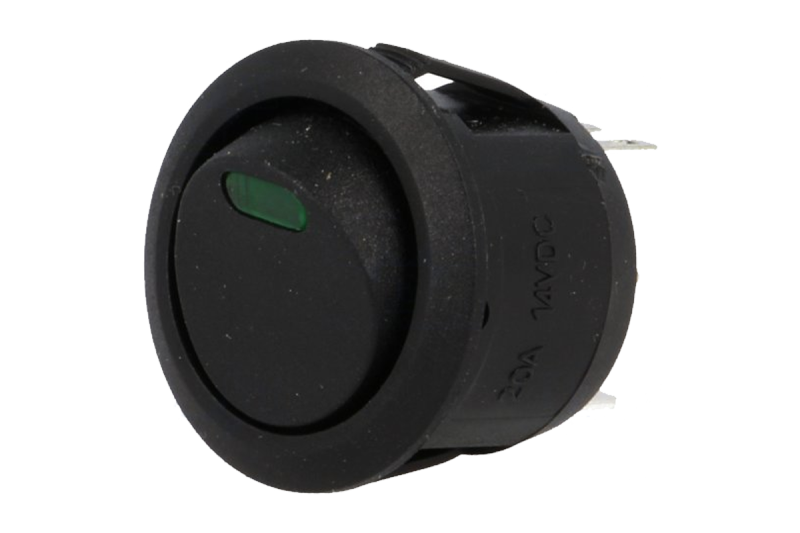 Kolískový vypínač návratný 2-polohový čierny + zelené LED svetielko 20A 12V