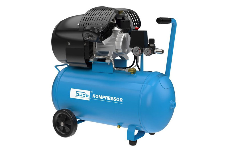 Dvojvalcový V-agregát s olejovým mazaním, s priamym pohonom. Tlakový spínač, manometer tlaku v nádobe a manometer pracovného tlaku, 2 spojky na stlačený vzduch, redukčný ventil, poistný ventil, spätný ventil, vypúšťací ventil na kondenzát, vzduchový filter. Dvojitá noha s gumovým nárazníkom, plastové kolesá, prepravná rukoväť.