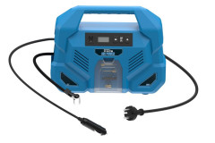 Mobilný kompaktný kompresor, bezolejový a bezúdržbový, s napájaním 12 V a 230 V. Rukoväť na prenášanie pre jednoduchú prepravu, hadica na stlačený vzduch s dĺžkou 0,6 metra, príslušenstvo a kábel uložené všetko v jednom, priehradka na malé komponenty, viaceré dýzy pre rôzne aplikácie. Vhodný na nafukovanie pneumatík automobilov, motocyklov, bicyklov, nafukovacie matrace, lopty a mnoho ďalších predmetov.