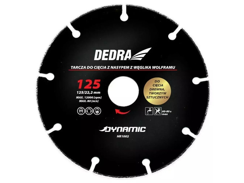 Kotúč odporúčaný na rezanie dreva, drevotriesky, plastov. Povlak z karbidu volfrámu.