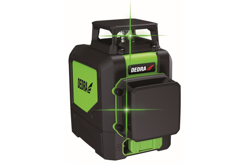 Laserové ukazovadlo DEDRA MC0906 sa dá použiť nielen na renovačné a stavebné práce, ale aj na dekoráciu stien a zavesenie skríň. Laser sa dá použiť naautomatické vyznačenie horizontálnych (360°), vertikálnych a priečnych čiar. Dosah lasera tohto modelu je 30 m. Pri použití detektora sa dosah zvyšuje na 50 m. Laser má samonivelačný systém 4°, ktorý umožňuje prevádzku bez potreby manuálnej kalibrácie lasera. Laser je určený na použitie s magnetickým držiakom alebo rozpernou tyčou. Robustný kryt chráni laser pred náhodným poškodením. Použitie značkových diód OSRAM zaručuje vynikajúcu viditeľnosť lúča aj pri osvetlení-zelená farba lasera.