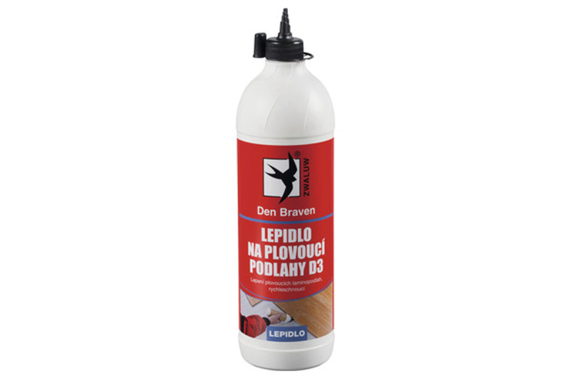 Na lepenie všetkých typov lamino a drevených podláh. Lepenie plávajúcich podláh – kombinácia masív – MDF. Okamžite použiteľné, vynikajúca lepivosť v spoji pero-drážka. Lepidlo na báze PVAC disperzie s odolnosťou voči vode D3 podľa EN 204. Pevnosť lepeného spoja je vyššia ako pevnosť vlastného dreva.