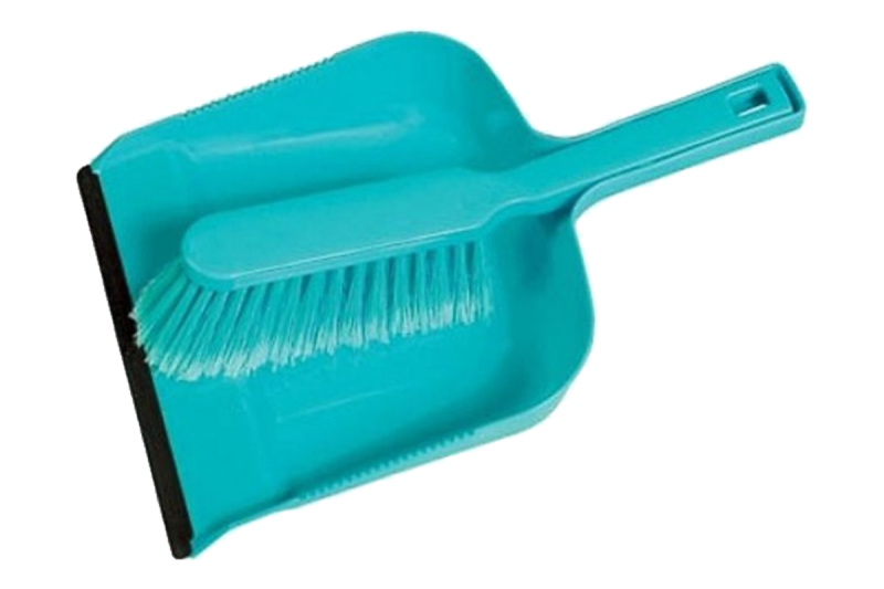 Súprava zmeták s lopatkou vyrobené z plastu, s gumovou lištou. Zmeták má štepené syntetické vlákna (PET).