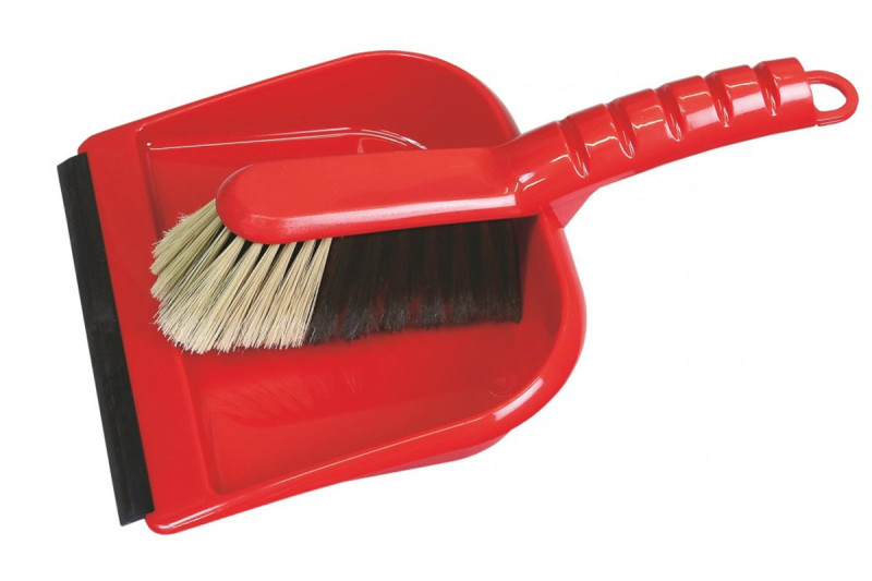 Súprava zmetáka a lopatky vyrobená z plastu, so štiepenými syntetickými vláknami (PET) a gumovou lištou.
