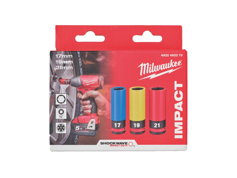 - MILWAUKEE 1" SHOCKWAVE™ IMPACT sada rázových priemyselných hlavíc na kolesá 3ks