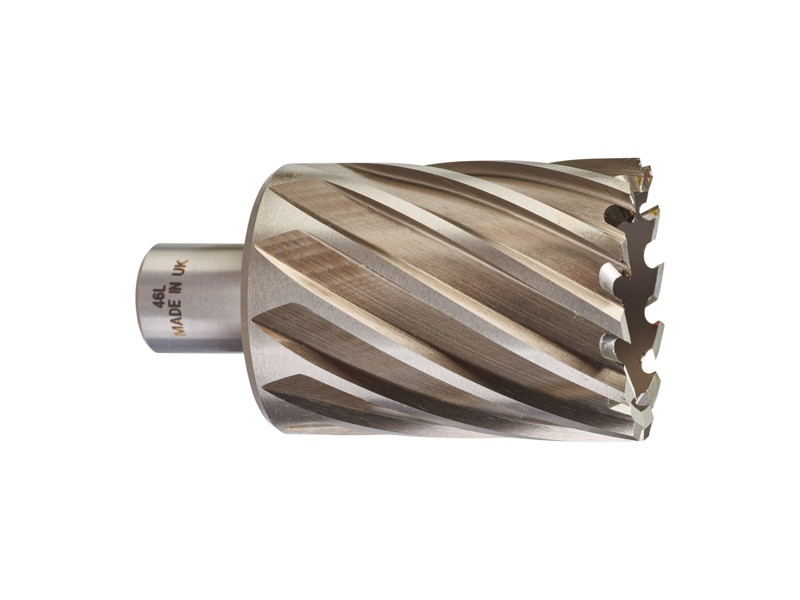 - Dlhšia životnosť – Kruhové frézy, ktoré režú len obvod otvoru, vyvŕtajú na jedno nabrúsenie viac otvorov ako štandardný vrták. Telo s hrúbkou 6 mm so špeciálnou geometriou zubov zaisťujú vyššiu stabilitu a na minimum znižujú riziko zlomenia z preťaženia.