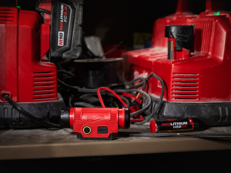 - Ukazovateľ nabitia umožňuje rýchlu kontrolu stavu akumulátora REDLITHIUM™ USB