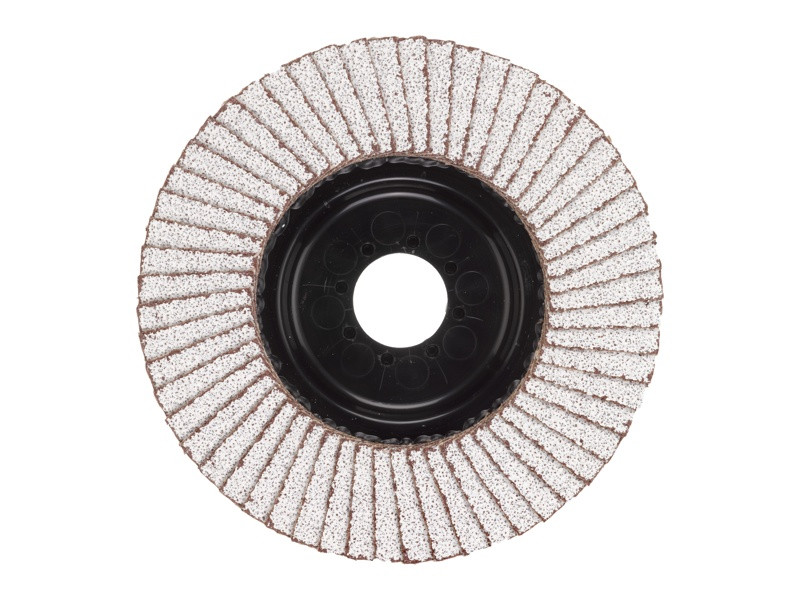 - Špeciálna povrchová úprava lamiel zabraňuje upchávaniu kotúča pri brúsení hliníka, neželezných kovov a dreva.