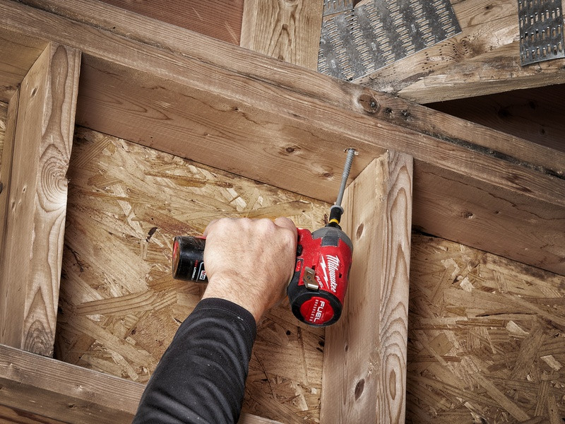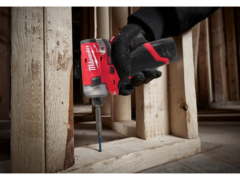 - M12 FUEL™ SURGE™ 1” rázový uťahovák je najtichší 12V rázový uťahovák na trhu, ktorý pri práci s drevom generuje iba 76 dB (A)