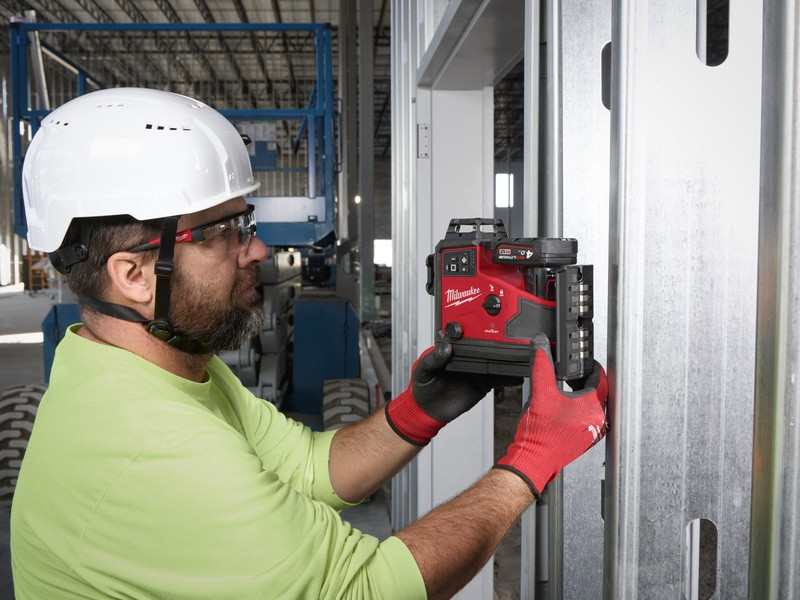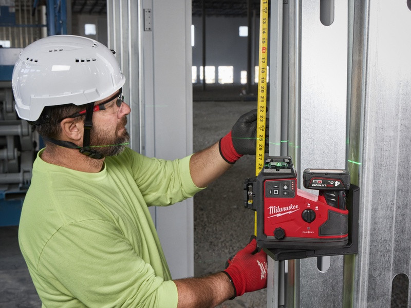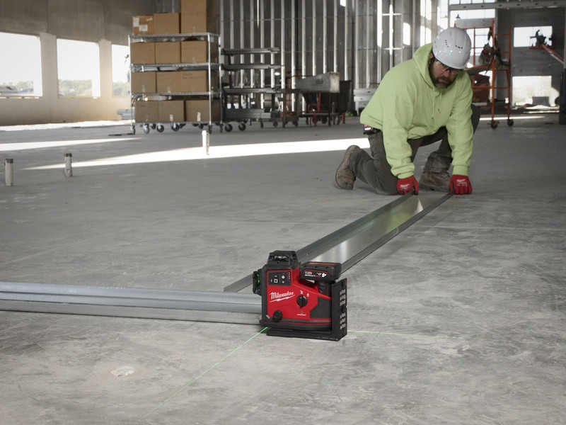 - M12™ zelený 360° laser s 3 rovinami poskytuje funkciu „všetko v jednom“ s jednou horizontálnou čiarou a dvoma vertikálnymi čiarami na rýchle a jednoduché zarovnanie, vyrovnanie, vyrovnanie do štvorca a prenosy, čo vám umožní ľahko rozvrhnúť veľké priestory pomocou jedného nástroja.