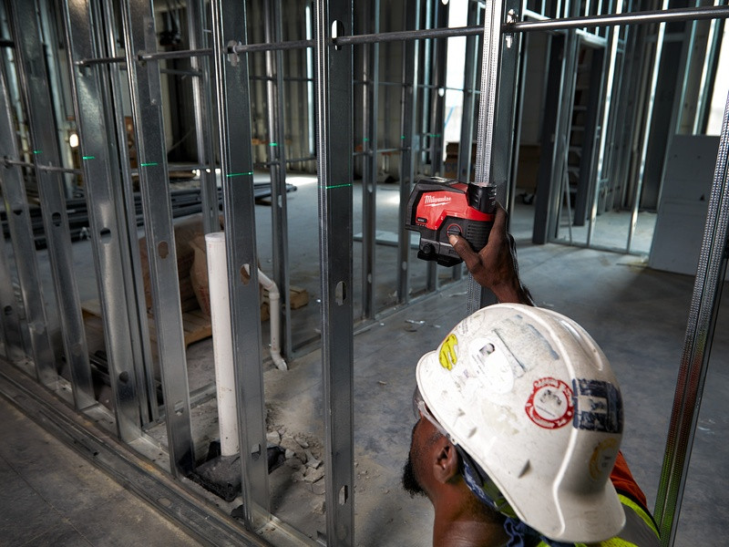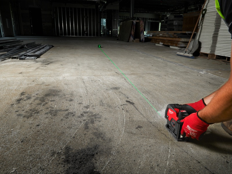 - Zelený krížový laser M12™ s olovnicami poskytuje funkcie všetko v jednom s vodorovným zarovnaním, zvislým zarovnaním a prenosom olovnice z podlahy na strop