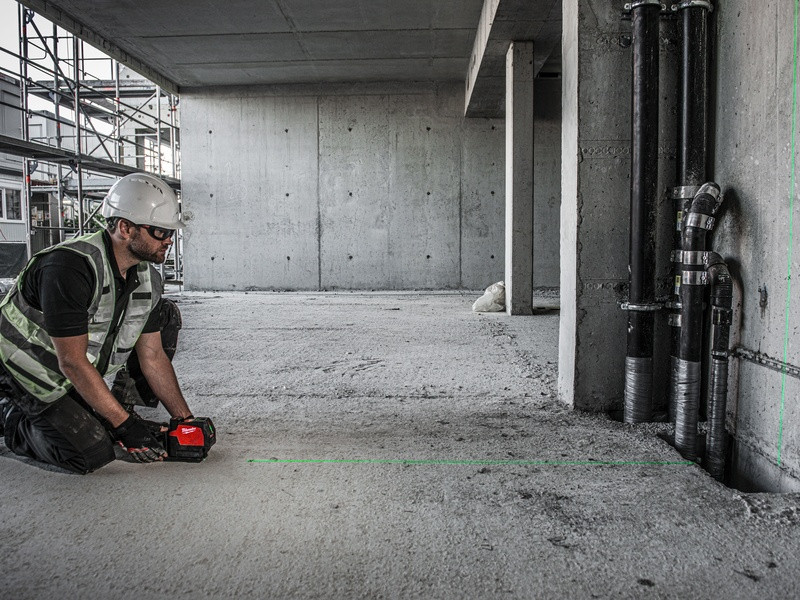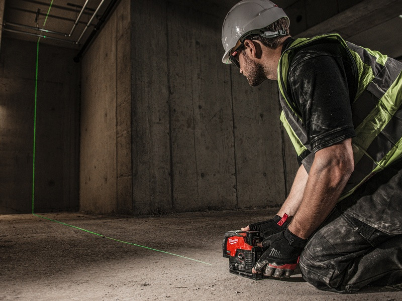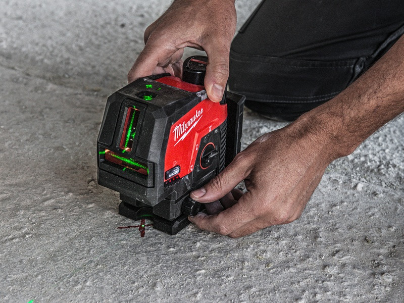 - Zelený krížový laser M12™ s olovnicami poskytuje funkcie všetko v jednom s vodorovným zarovnaním, zvislým zarovnaním a prenosom olovnice z podlahy na strop