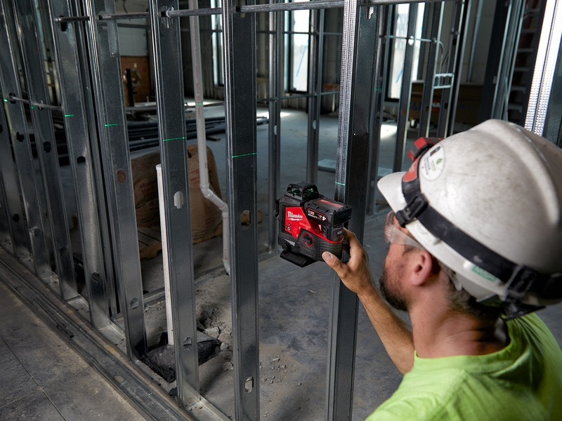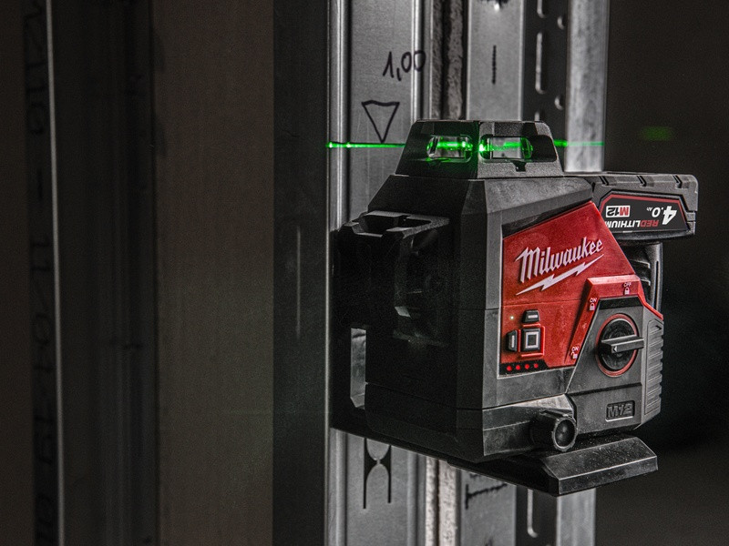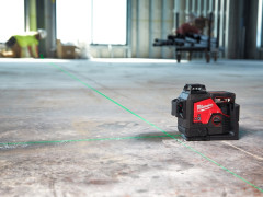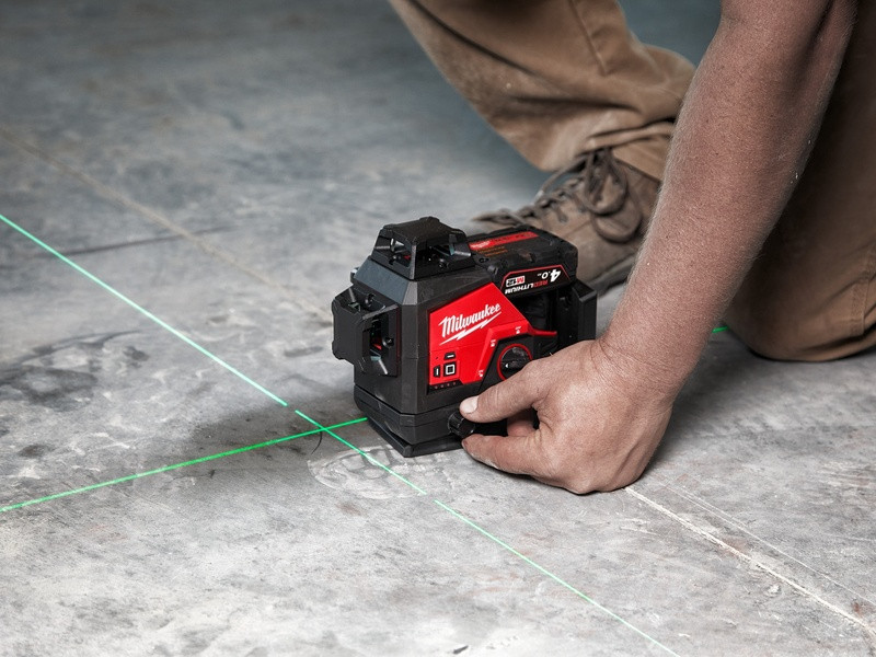 - Zelený laser M12™ s 3 rovinami a uhlom 360° ponúka všetky funkcie v jednom, a to vďaka jednej vodorovnej linií a dvom zvislým líniám pre rýchle a ľahké zarovnanie, vyrovnanie, kvadratúru a prenos umožňujúce jednoduché rozloženie veľkých priestorov pomocou jedného nástroja