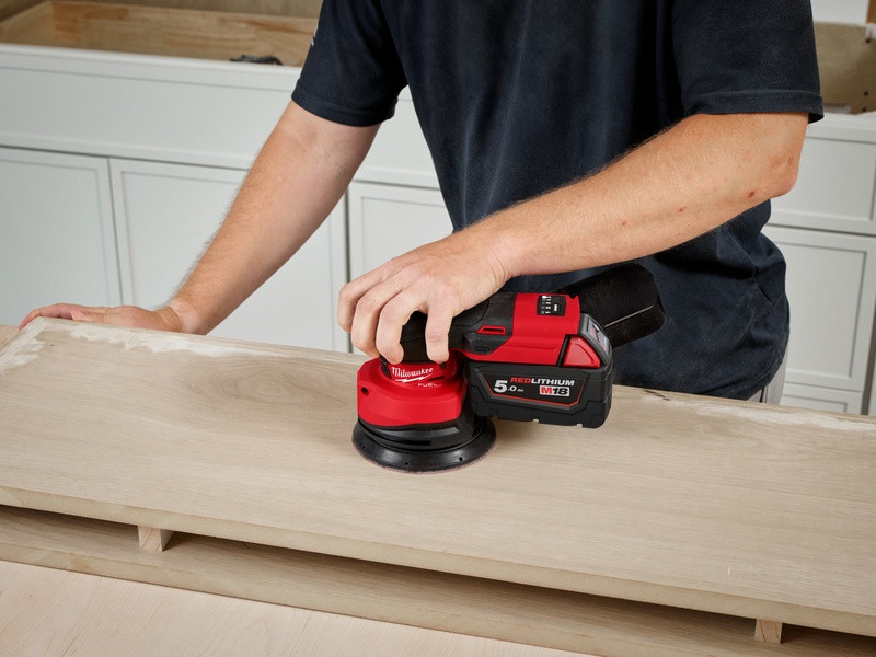 - Brúska M18 FUEL™ má 2,5 mm orbitálny priemer s 12 000 otáčkami za minútu, čo umožňuje rýchly a efektívny úber 220 g materiálu na jedno nabitie akumulátora M18™ 5,0 Ah.