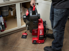 - Prvý voľne stojací čistič potrubia na svete s akumulátorom 18 V, s elektrickým nožným pedálom a integrovanou bubnovou brzdou pre väčšiu kontrolu a bezpečnosť