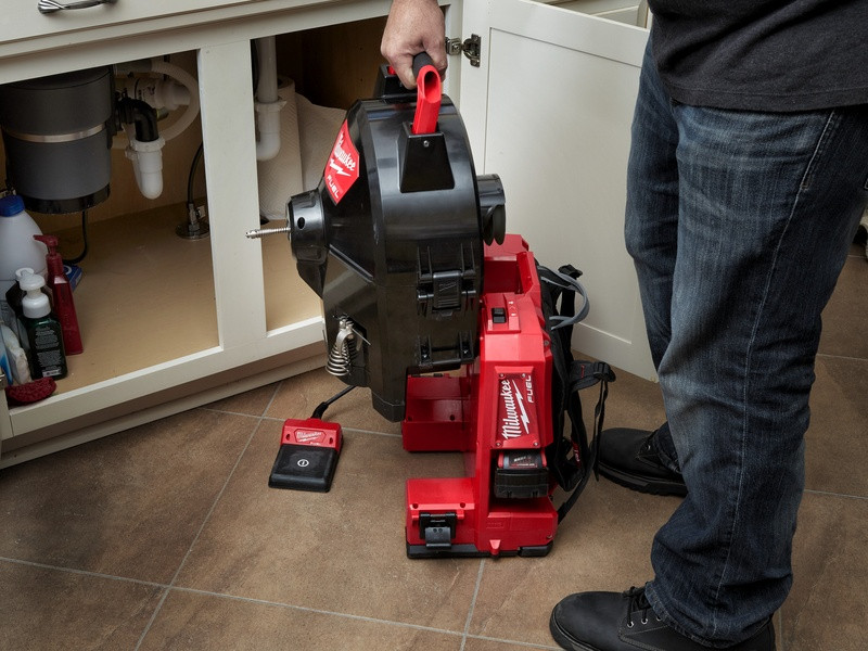 - Prvý voľne stojace čistič potrubia na svete s akumulátorom 18 V, s elektronickým nožným pedálom a integrovanou bubnovou brzdou pre väčšiu kontrolu a bezpečnosť