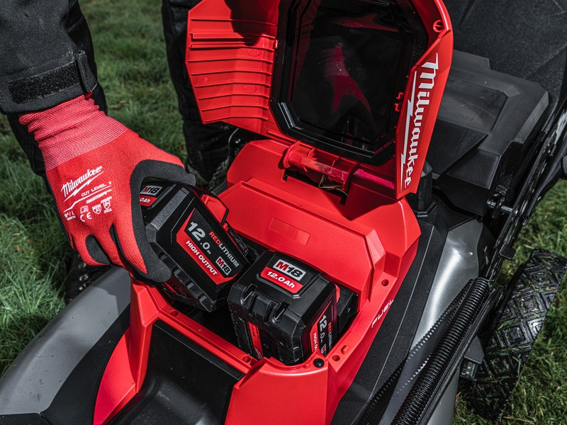 - Na jedno nabitie dvoch akumulátorov M18™ HIGH OUTPUT™ 12,0 Ah pokosí oblasť s rozlohou až 2 000 m2
