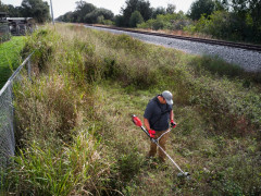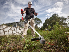- Výkonný krovinorez určený na čistenie trávy, buriny, hustých krovín a mladých stromov do priemeru 3 cm