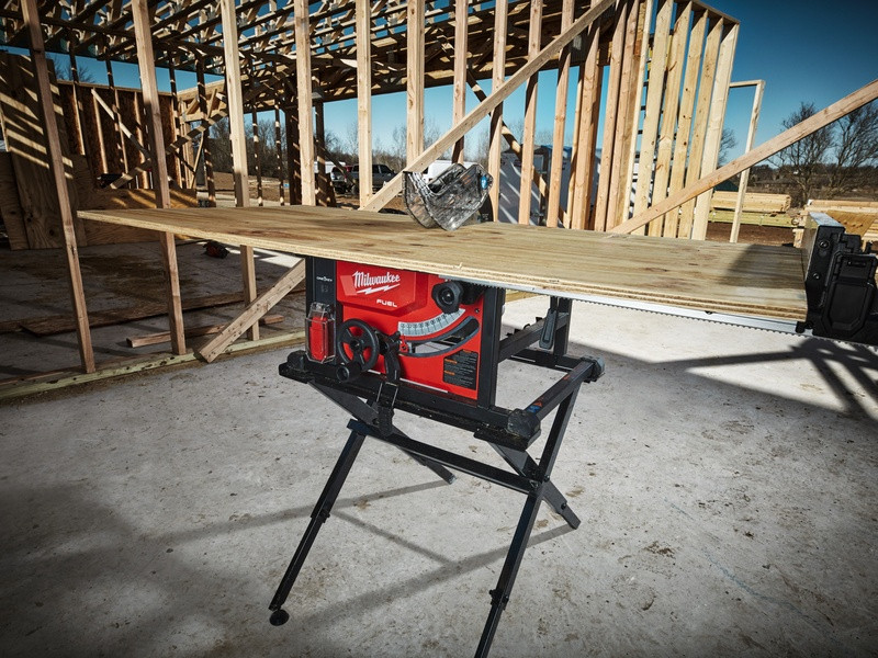 - Stolová píla ONE-KEY™ M18 FUEL™ umožňuje pozdĺžne rezy s rýchlosťou posuvu, akou disponuje rovnaká stolová píla s napájacím káblom, a vykoná rez s dĺžkou 190 m na OSB doskách s hrúbkou 19 mm na jedno nabitie akumulátora s kapacitou 12,0 Ah