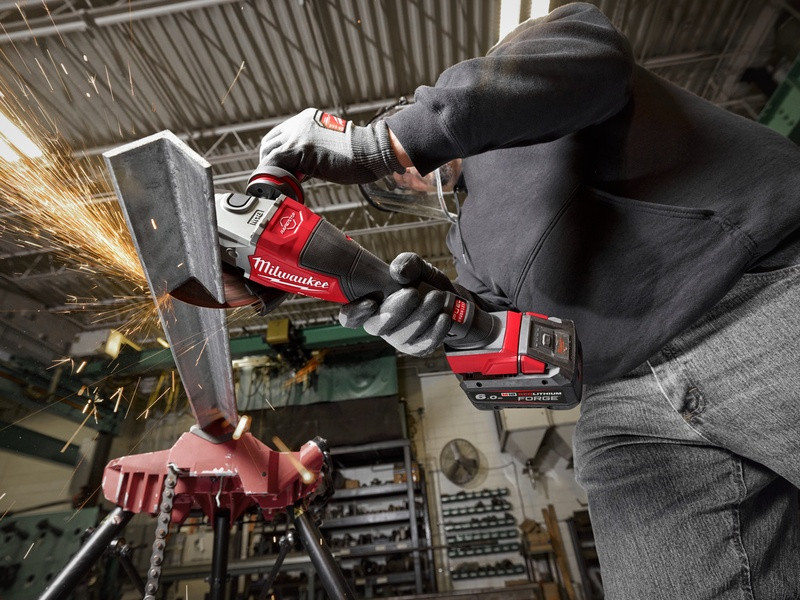 - Vysoko výkonná 125 mm uhlová brúska M18™ s výkonom podobným 1800 W sieťovému náradiu