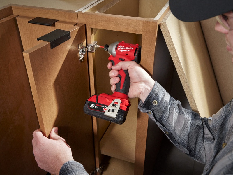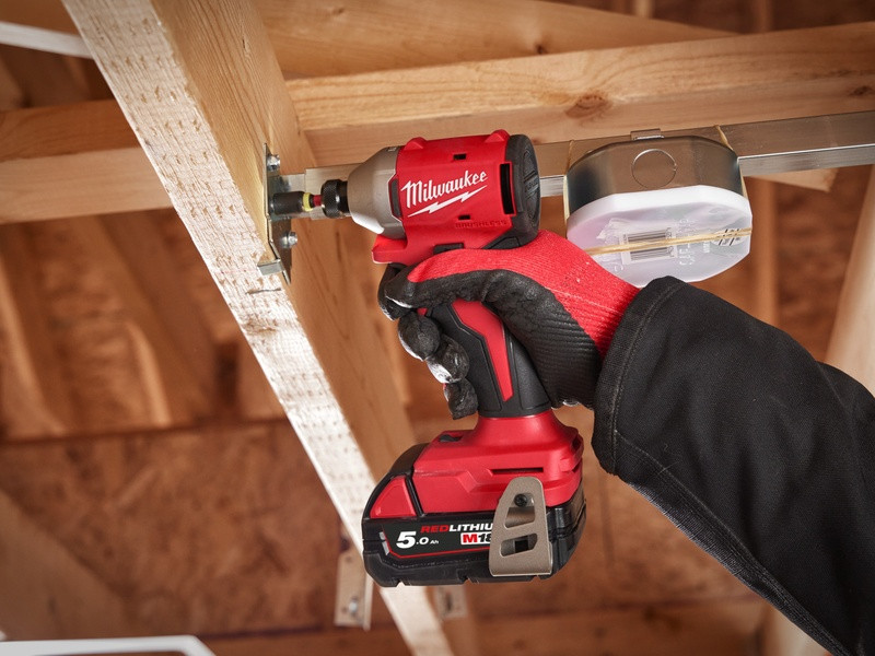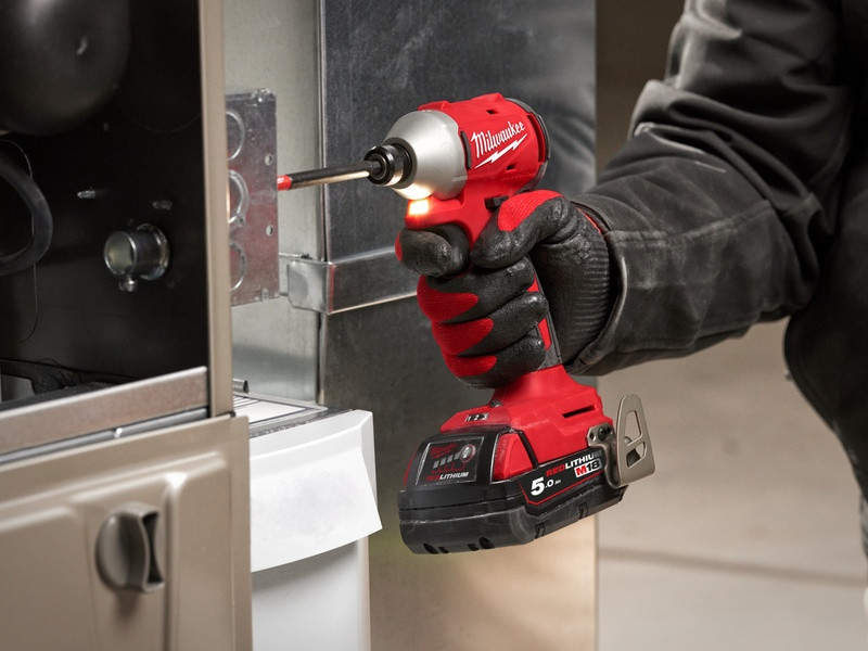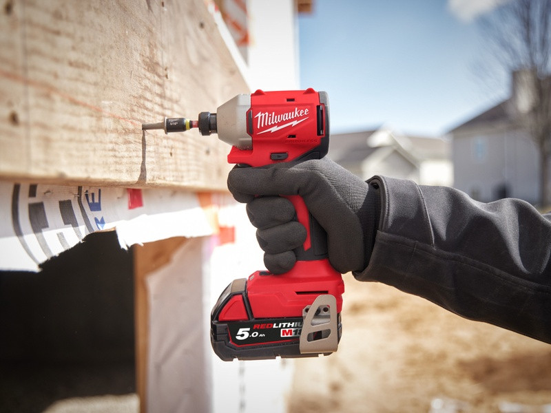 - MILWAUKEE M18 Kompaktný bezuhlíkový rázový uťahovák s 3 rýchlosťami, s 2xM18B5, M12-18FC & balené v kufríku, verzia EÚ M18 BLIDR-502X EU