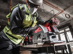 - Ponorná píla M18 FUEL™ poskytuje taký výkon, ktorý umožňuje pri rezaní dosahovať rýchlosť podávania ako pri ekvivalentnej sieťovej kotúčovej píle, a možnosť narezať až 45 metrov 18 mm preglejky na jedno nabitie 5,5 Ah akumulátora