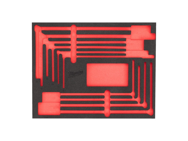 - Prvotriedna pena pre dlhšiu životnosť, laserom vyrezané veľkosti pre jednoduchú a rýchlu identifikáciu veľkosti a červené pozadie pre rýchlu identifikáciu chýbajúcich nástrojov.